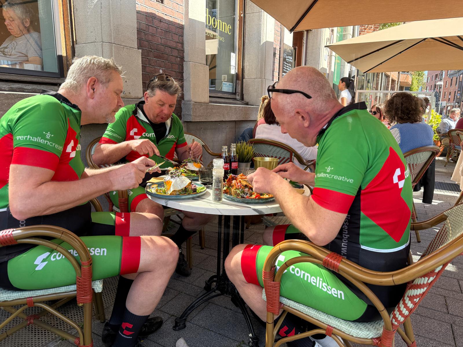 Mannen morgenvroeg is het dan weer zover onze clubdag waar iedereen naar uitgekeken heeft en een steentje heeft bijgedragen. We verzamelen om 7.45 uur bij mij in Uden. René haalt Erik op. Edward en Willem komen samen en Theo peer en Edje komen rechtstreeks naar mijn. Erik en Edward hebben voor een prachtige nieuwe route gezorgd . Theo René en Edward zorgen voor vervoer . Edje is de bezem wagen met al zijn reserve spullen .we hebben 1 keer koffie met gebak en een lunch . We sluiten de dag af bij den brouwer met een heerlijke maaltijd en bier en fris voor ieders wat wil. Tot morgen 🙋‍♀